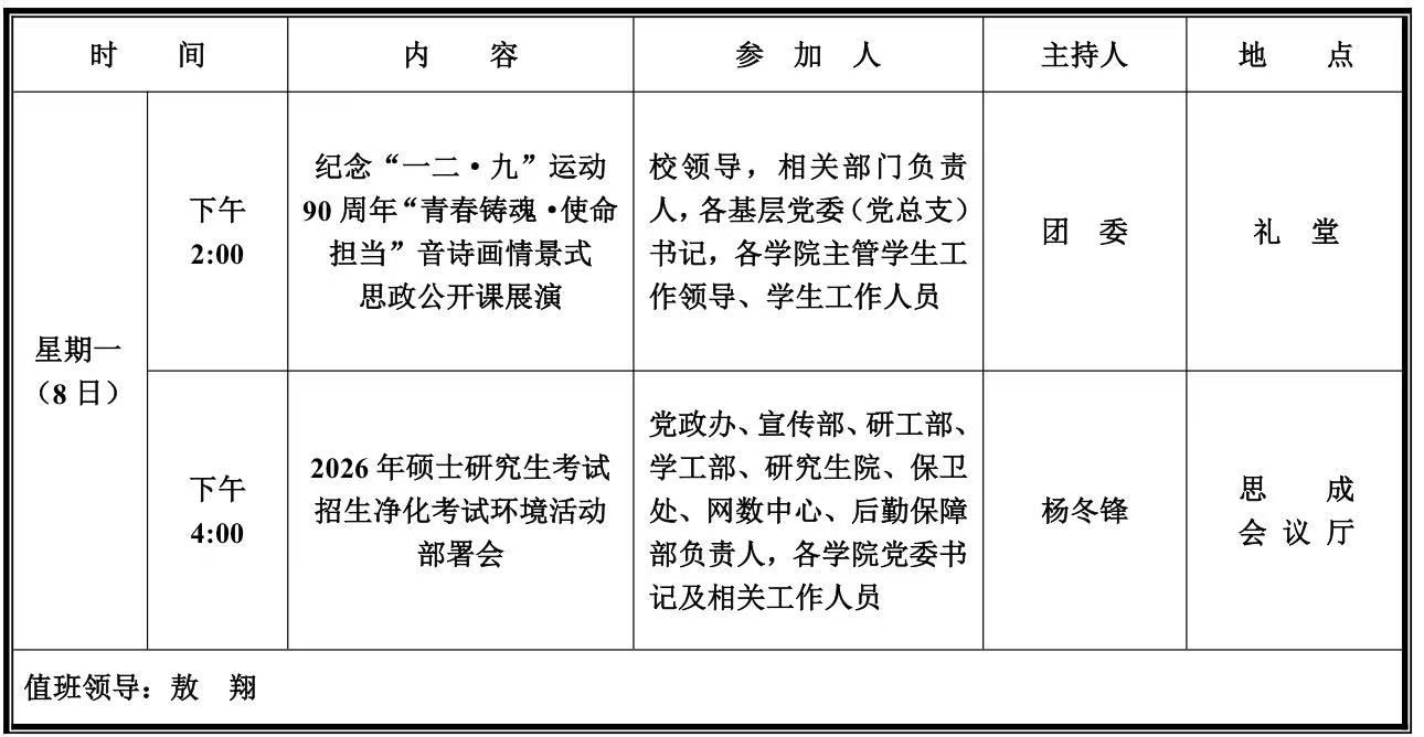 第十六周学校活动安排