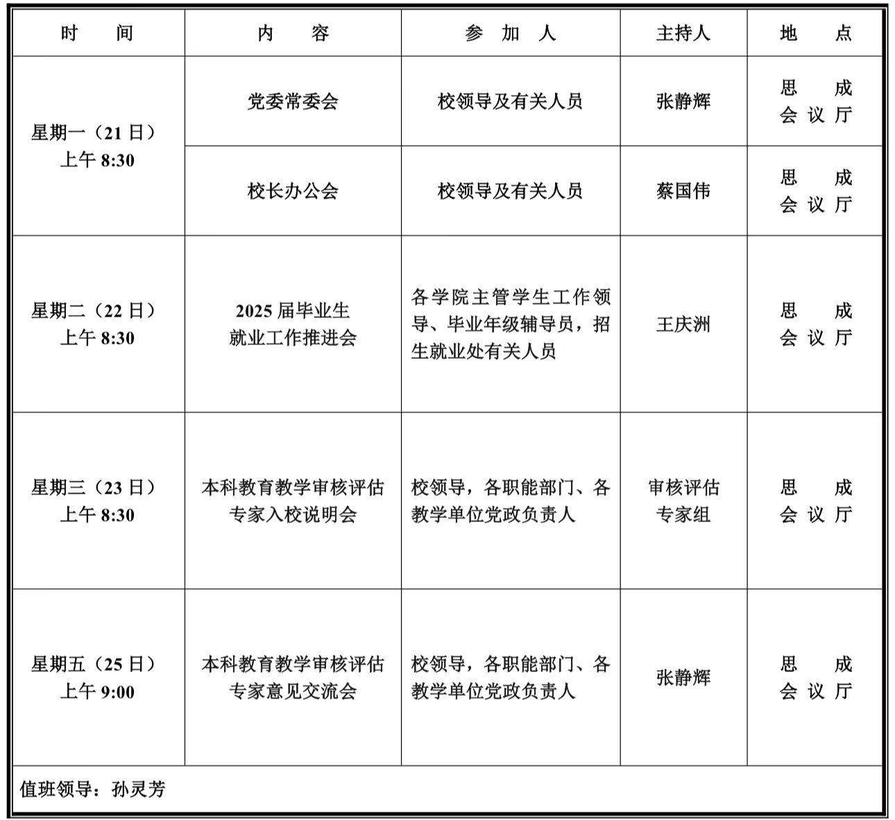 第九周学校活动安排
