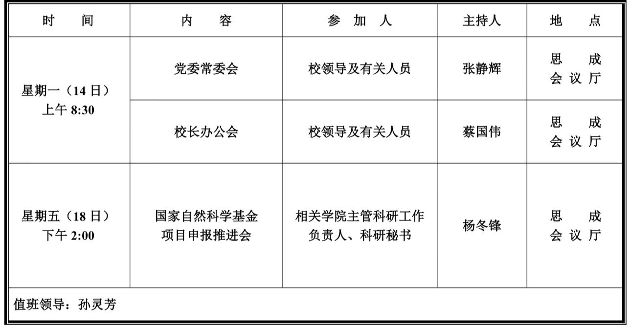 第八周学校活动安排