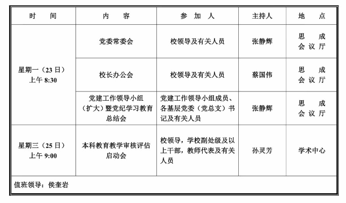 第五周学校活动安排