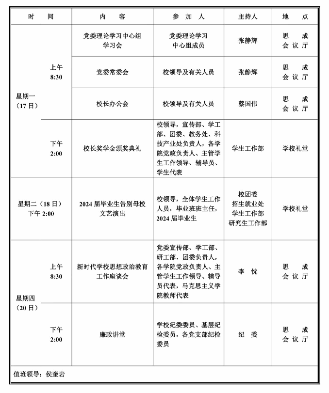 第十六周学校活动安排