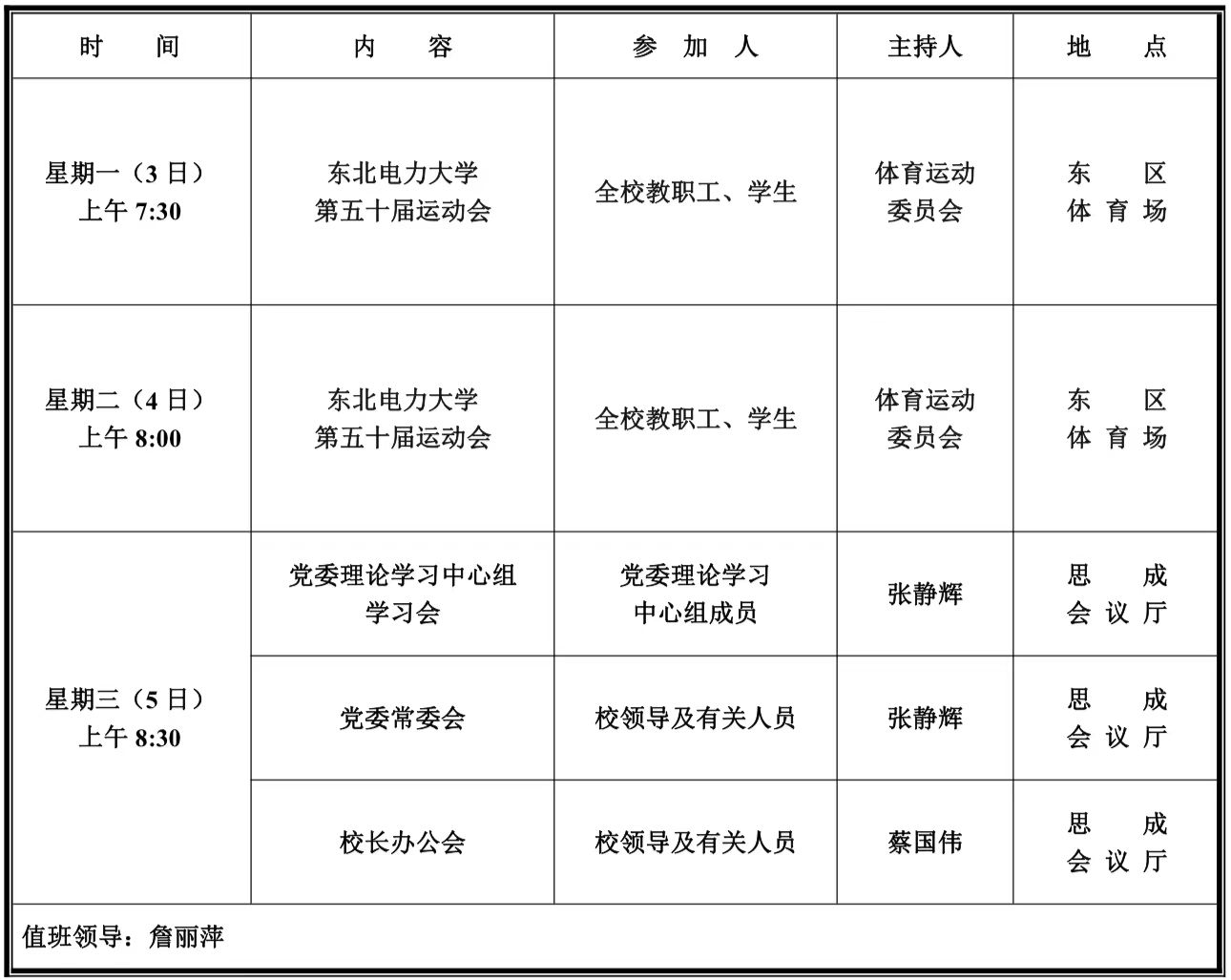 第十四周学校活动安排