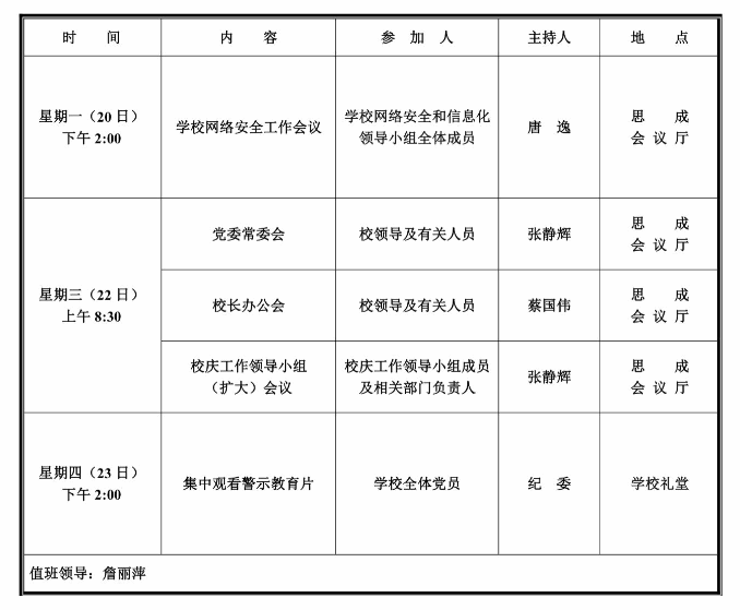 第十二周学校活动安排