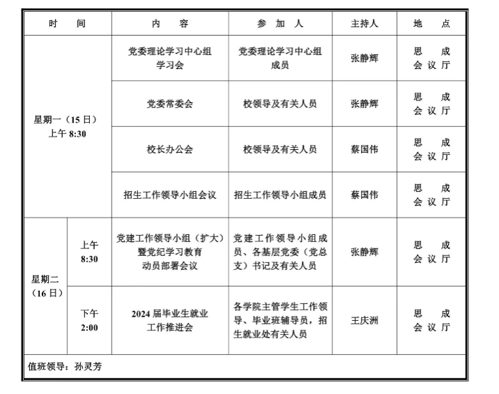 第七周学校活动安排