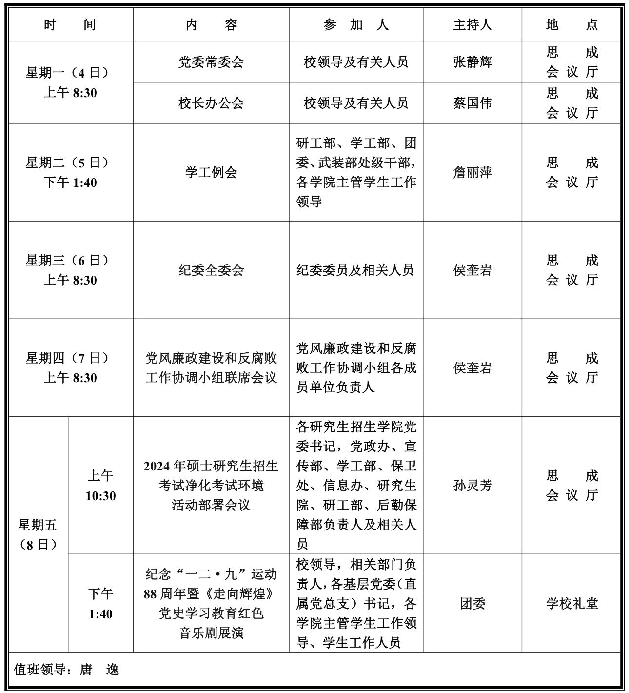第十六周学校活动安排