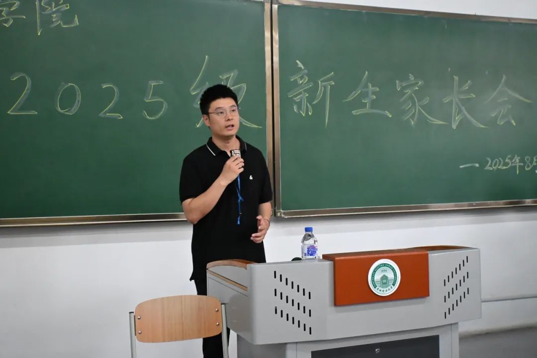 党委书记马崇升、各系部主任、新生辅导员及2025级新生家长参加本次会议,会议由学生工作办公室主任李丹主持。会议就P站视频