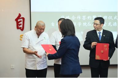 紧接着进入授牌环节,双方领导相互授予合作牌匾,标志着合作基地正式落地。