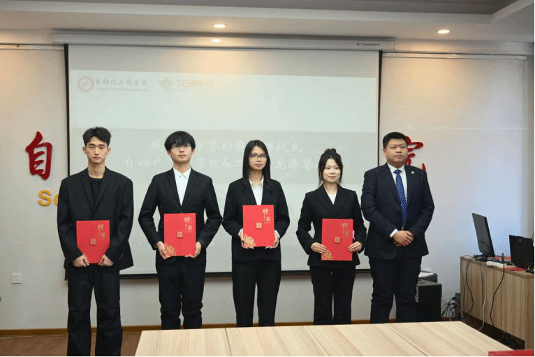 ”聘书,龙源集团吉林公司总经理助理刘虹声上台为四位学生代表颁发聘书,为合作落地配备专业指导力量。