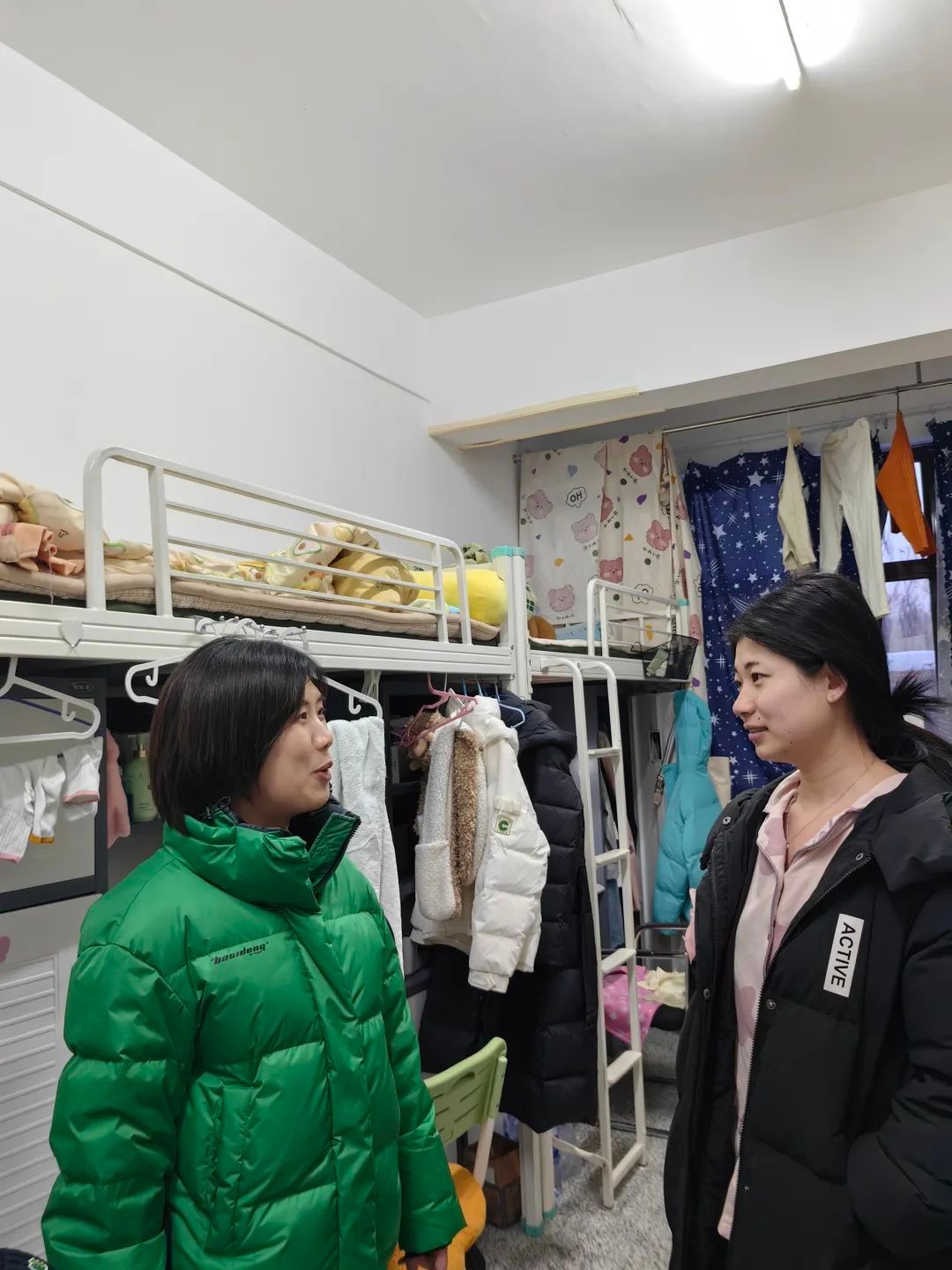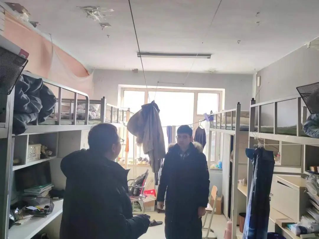 学办辅导员李丹、王玮走访检查了研究生寝室,检查了寝室安全情况,与在校学生进行亲切交谈,反复叮嘱学生要认真对待安全工作,积极主动提高安全意识。