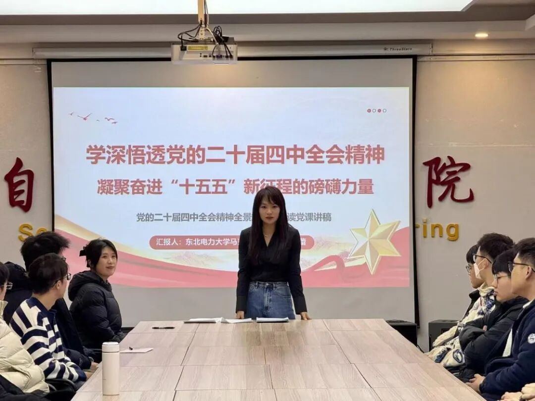 宣讲会上,王鑫蕾老师紧扣党的二十届四中全会核心内容,结合生动案例展开系统阐释。她首先梳理了全会召开的时代背景与历史方位,阐明了“十五五”时期在社会主义现代化建设进程中的关键作用;随后深入解读全会的重大意义,重点剖析“六个坚持”重大原则,清晰阐释了党的全面领导、人民至上、高质量发展等核心要义;最后围绕全会提出的新思想、新论断、新部署,勾勒出具体实践路径。她的讲解条理清晰且深入浅出,既有理论高度又有实践温度,为在场党员带来了一场深刻又有深度的思想盛宴。