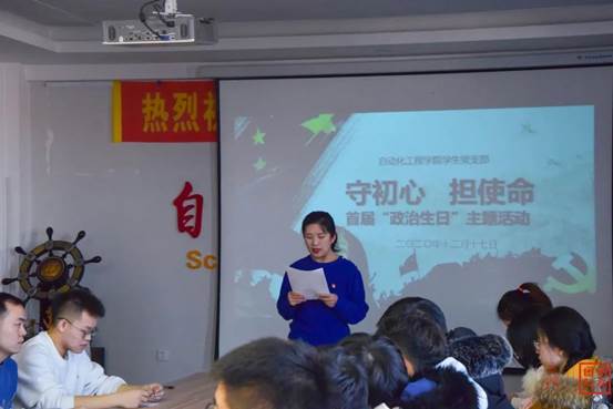 会议伊始,李丹老师对大家提出寄语,党支部对于大家来说是阵地,是旗帜,更是一个家,牢记党员的政治生日是对党的忠诚与信仰,也表达了每一位党员对党的感激与感谢。接着,李丹老师宣读P站视频